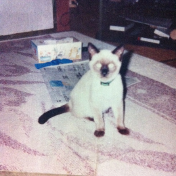 ロッキー:よし。この写真はオレが飼われた直後のものだ。もう13〜4年前になるかな。 当時、貰い手がなかったオレはそのままだったら処分されていたか捨て猫コースの人生を歩んでいた子ネコだった…… (※全部実話です)