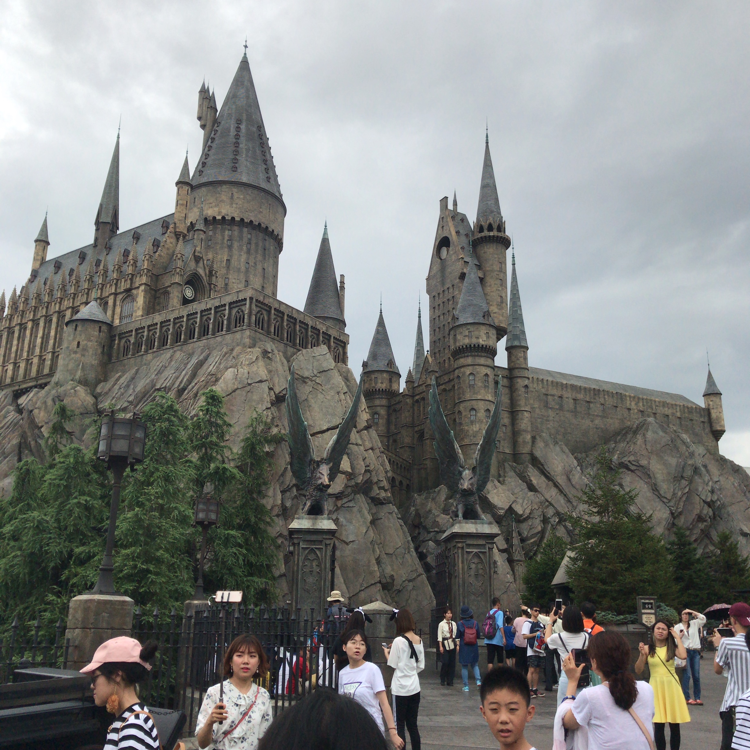 3回目になると、もうルートなどの要領も掴めてくる。左上画像は毎回外すぬいぐるみ欲しさに試す「1000円10球ボール入れ」。その右は「アズーレ・ディ・カプリ」のピザ。席は予約がオススメ。その右は「ハリーポッターの城」もうお決まり過ぎてありがたみないけど、本で負けねぇぞぉ!とみんなで叫んで入場。そして下が、実はこのパーク内で一番おいしい「伊藤ハムのホットドック」。自分で探して食べてみてください。