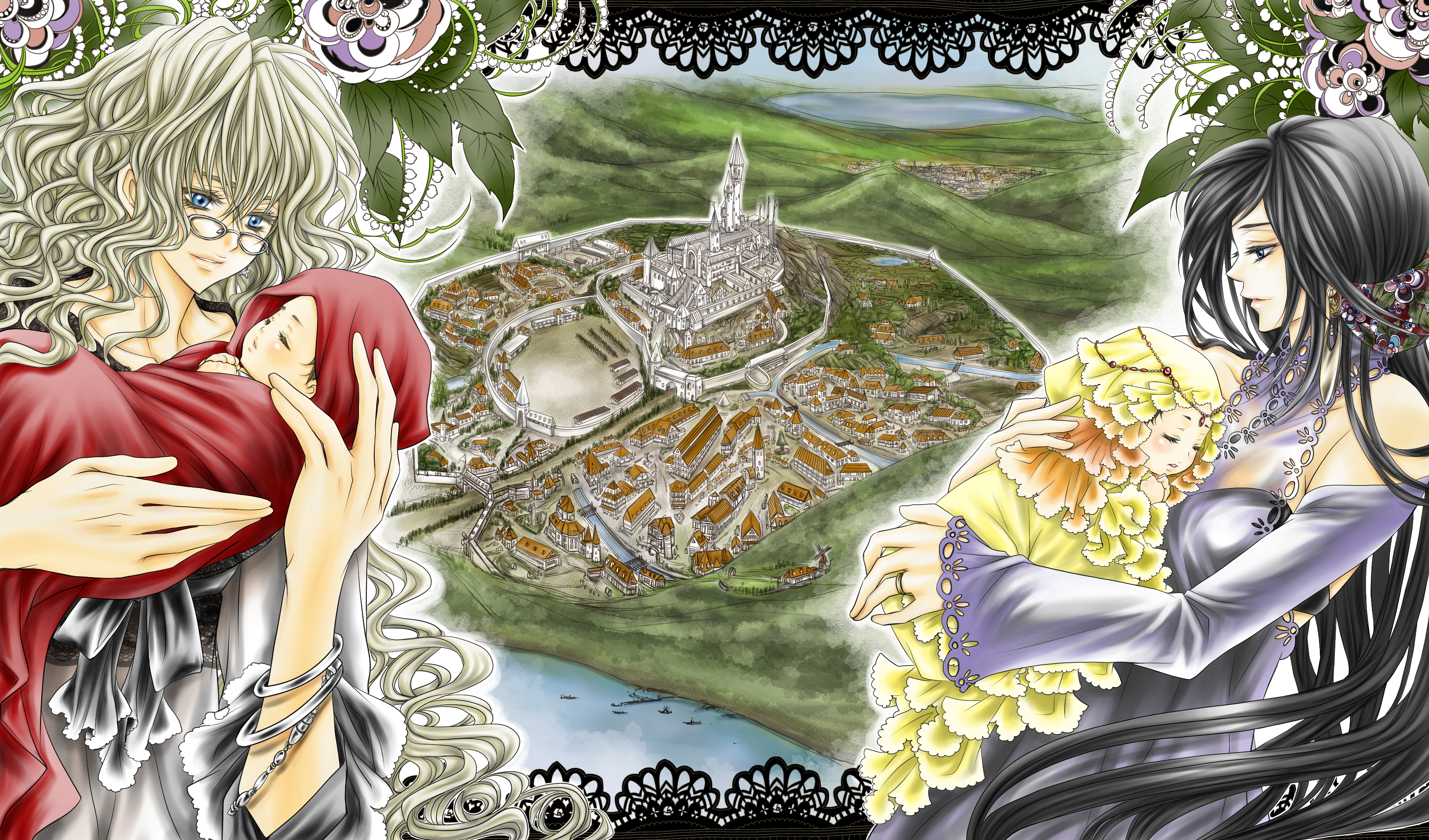 左の天然美人が主人公と彼女の子供。 右の大陸四大美人が王家の血筋を継ぐ子を産んだ王妃。