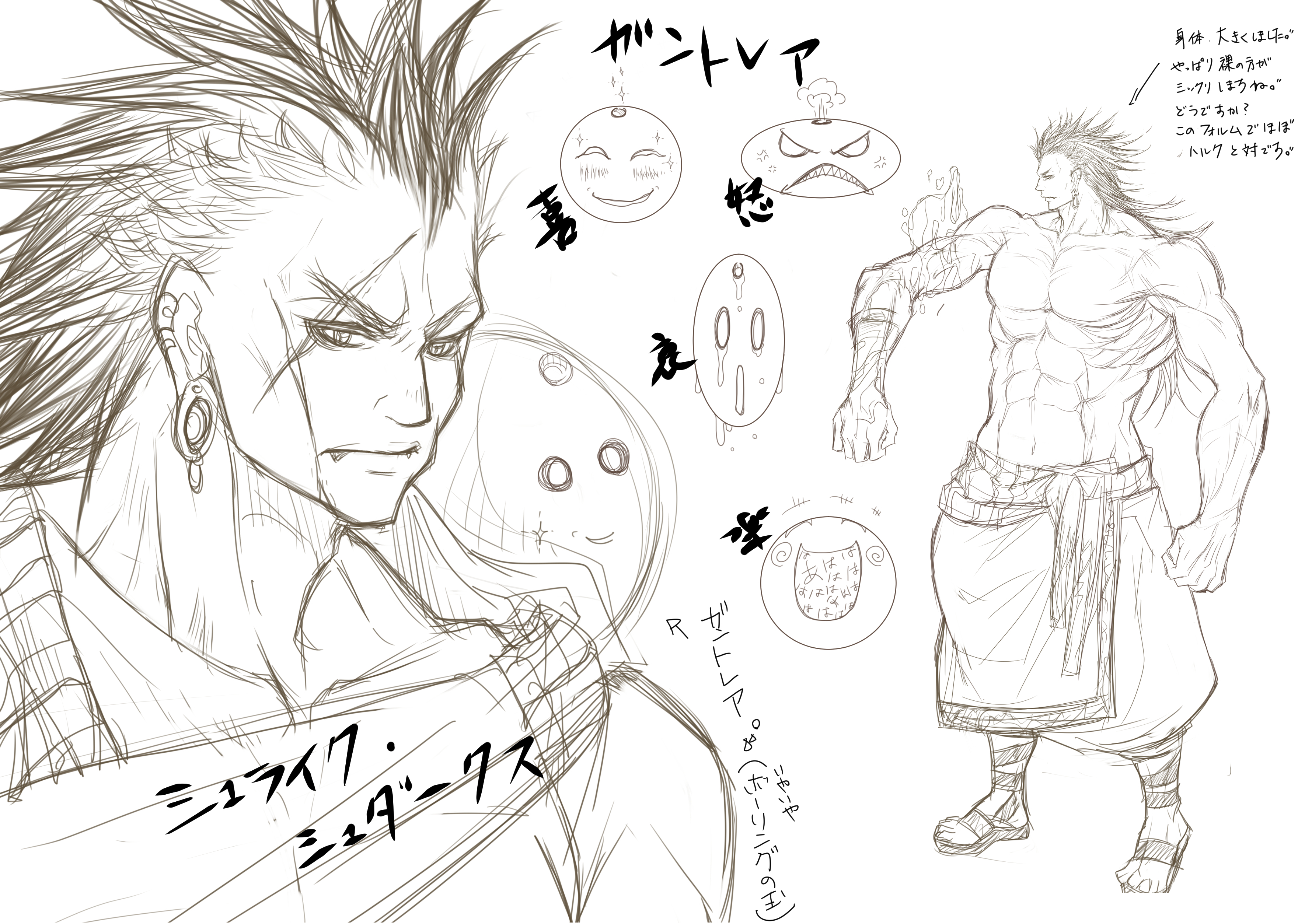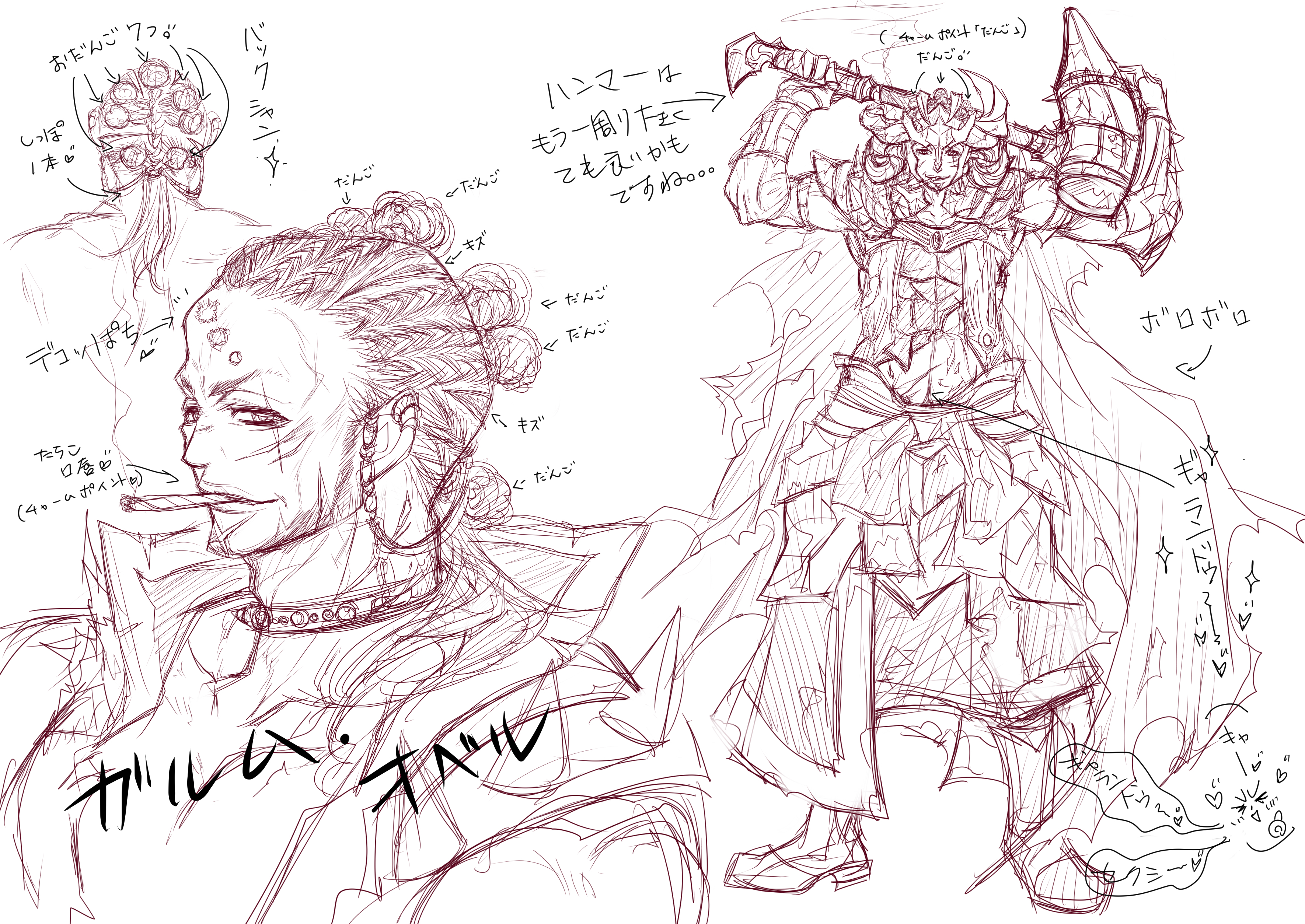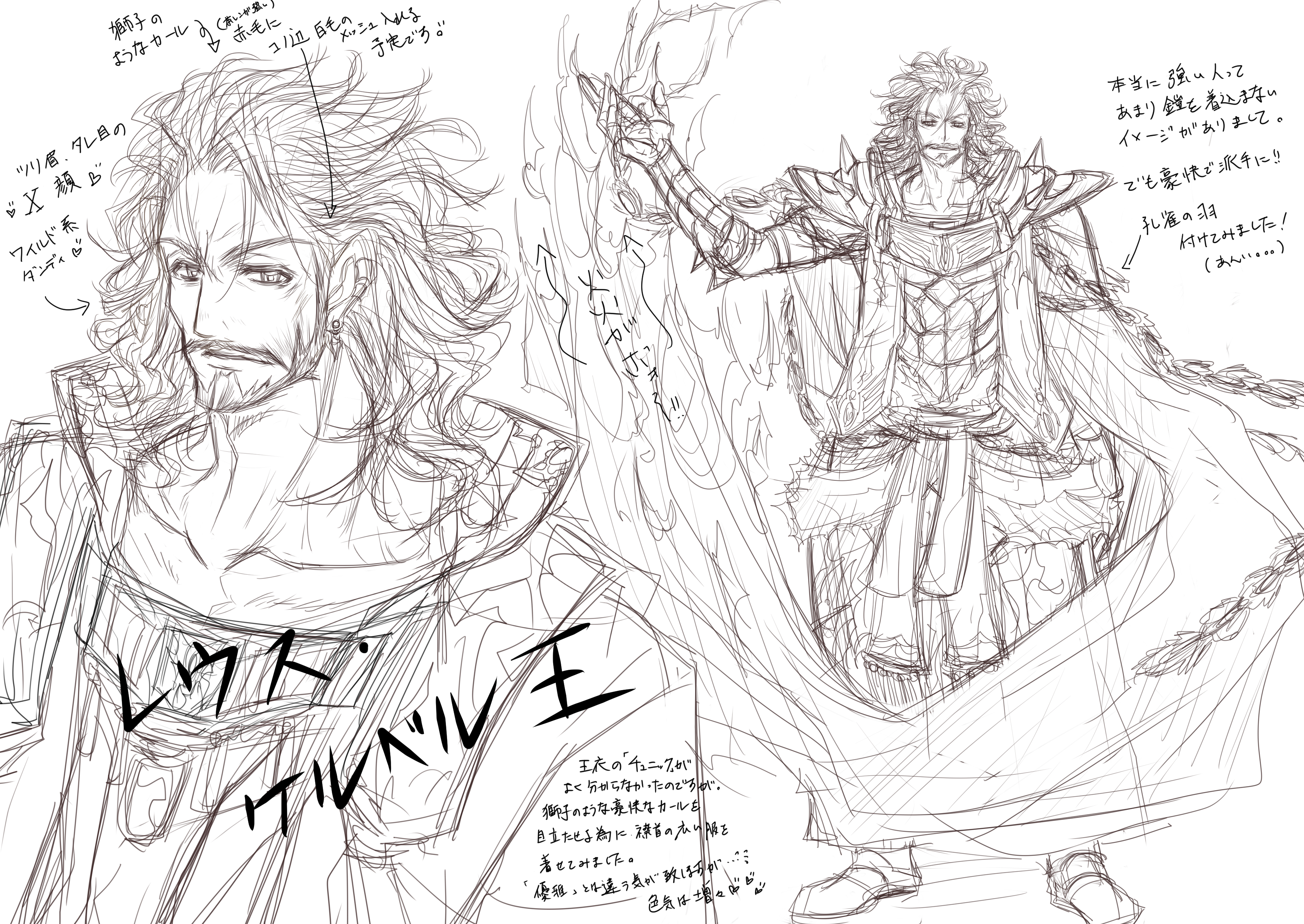 どこから見ても、元ホストの帝王という感じ。さすが新條さん。そこに痺れる憧れるぅ!ツリ眉タレ目のX顔。ワイルドダンディなおじ様。見た目的に、一番こんな大人になりたいランキング第一位かもしれない。ユディル共々おじさんを描かせたら実に味わい深くてよい。