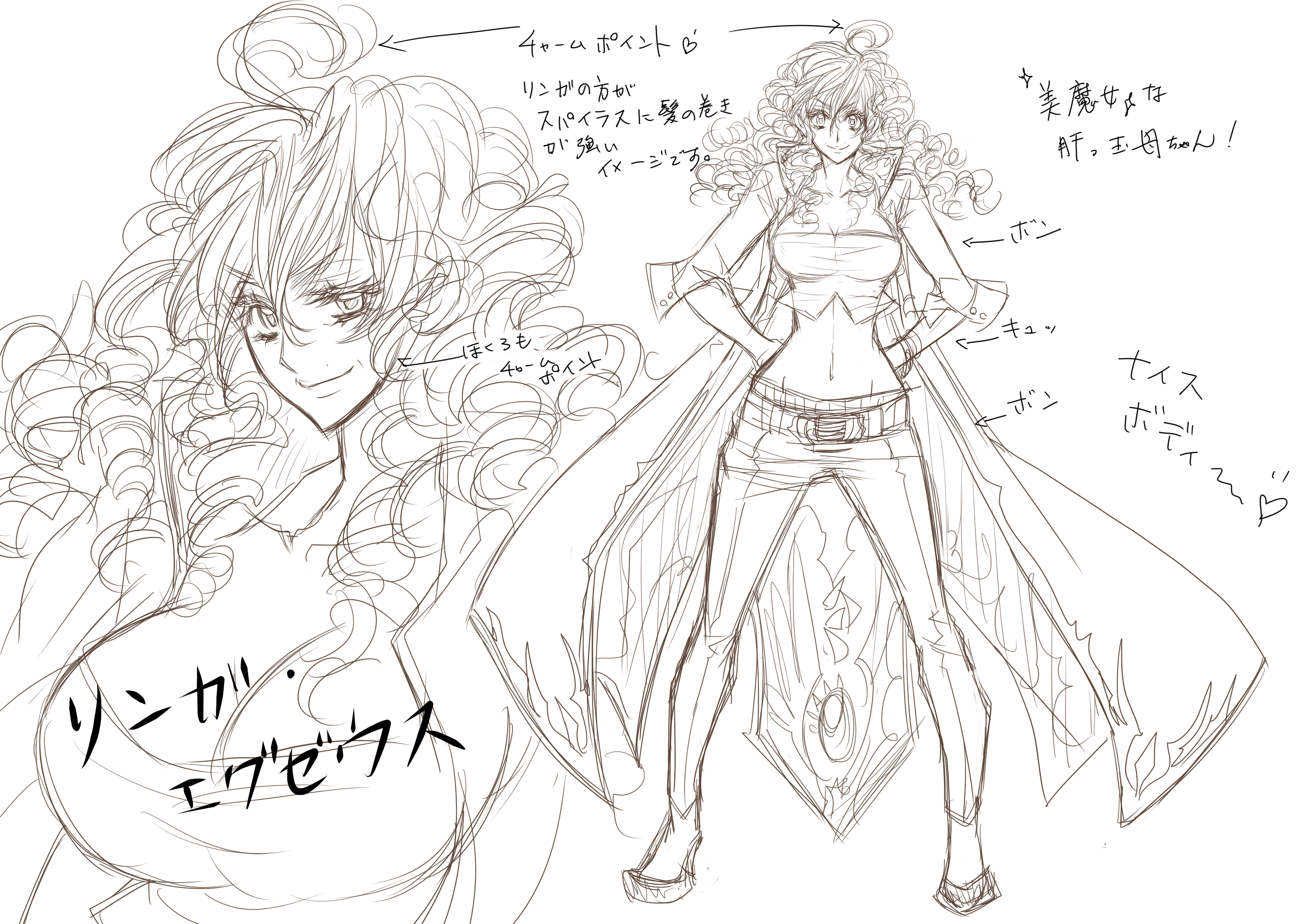 「エターナとパームの子供は将来的に超重要キャラになるんですよ」と新條さんにお願いをして、大陸四大美人の一人に名を連ねる元女優が造形される。この媚びない姿勢で描かれた若き大人の女性が、未来の正統派ヒロインの誕生を予感させる。