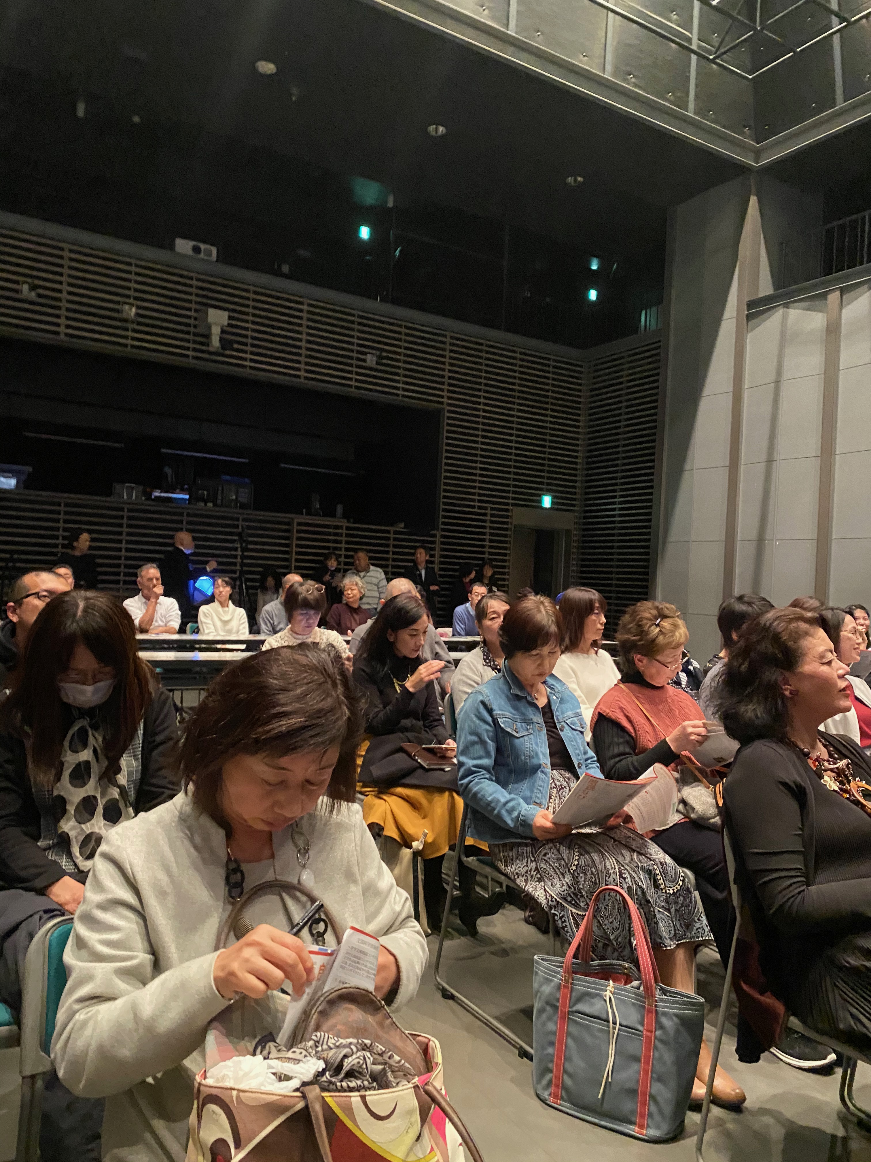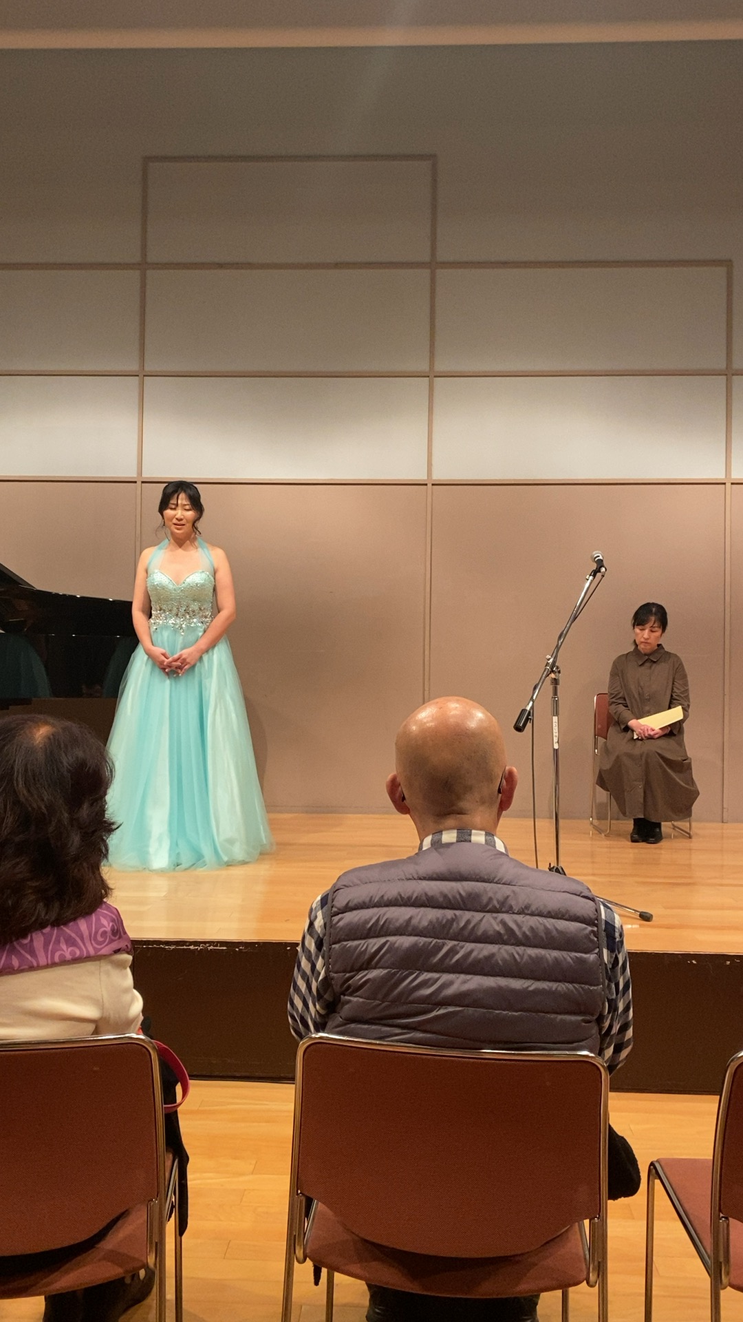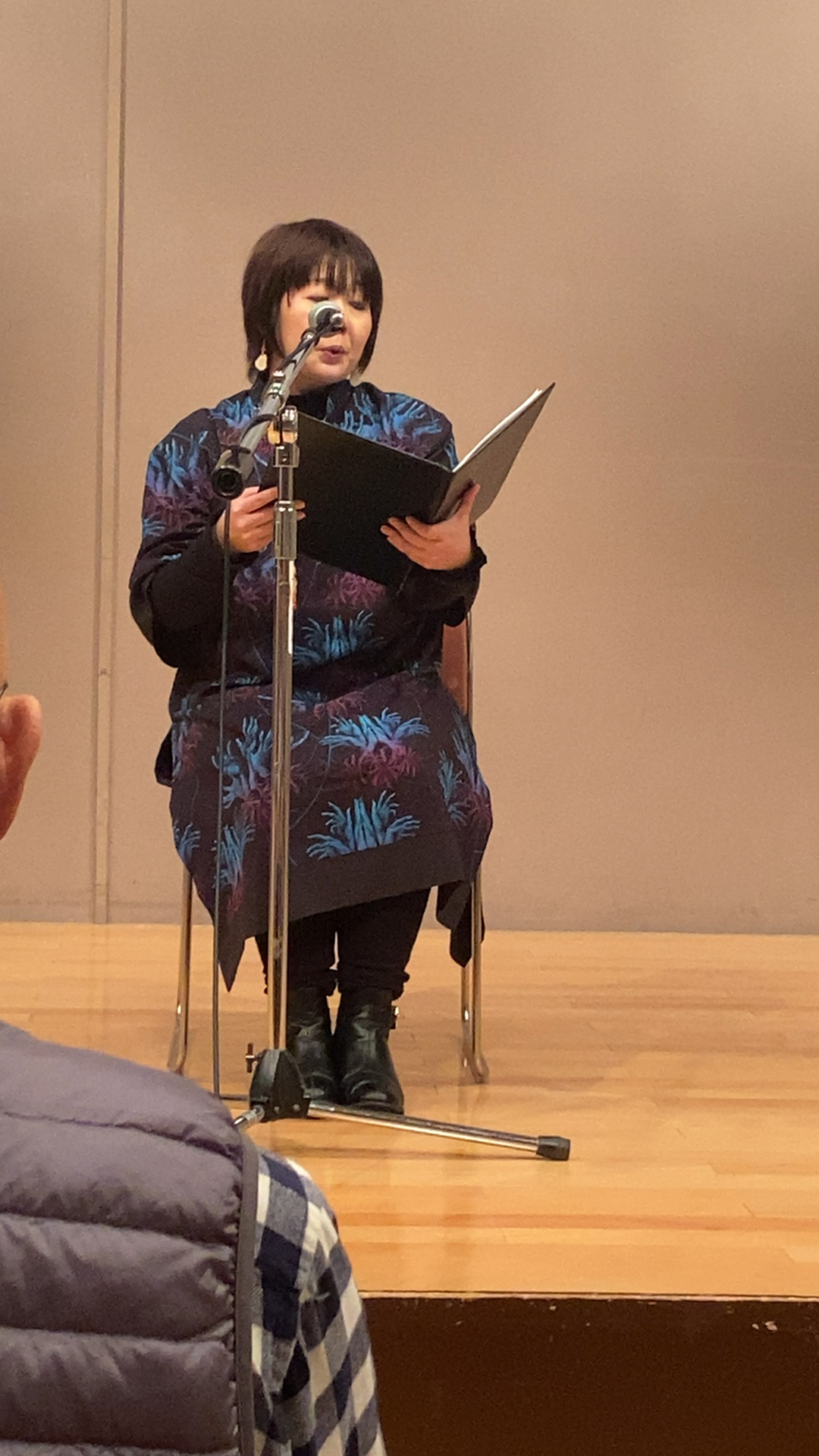 左が有島武郎「一房の葡萄」を朗読する玲さん。 右が朗読後にオペラをするという新しいコラボレーションな内容のあっという間な2時間でした。画像が横長ですが、みなさんスラッとしております!