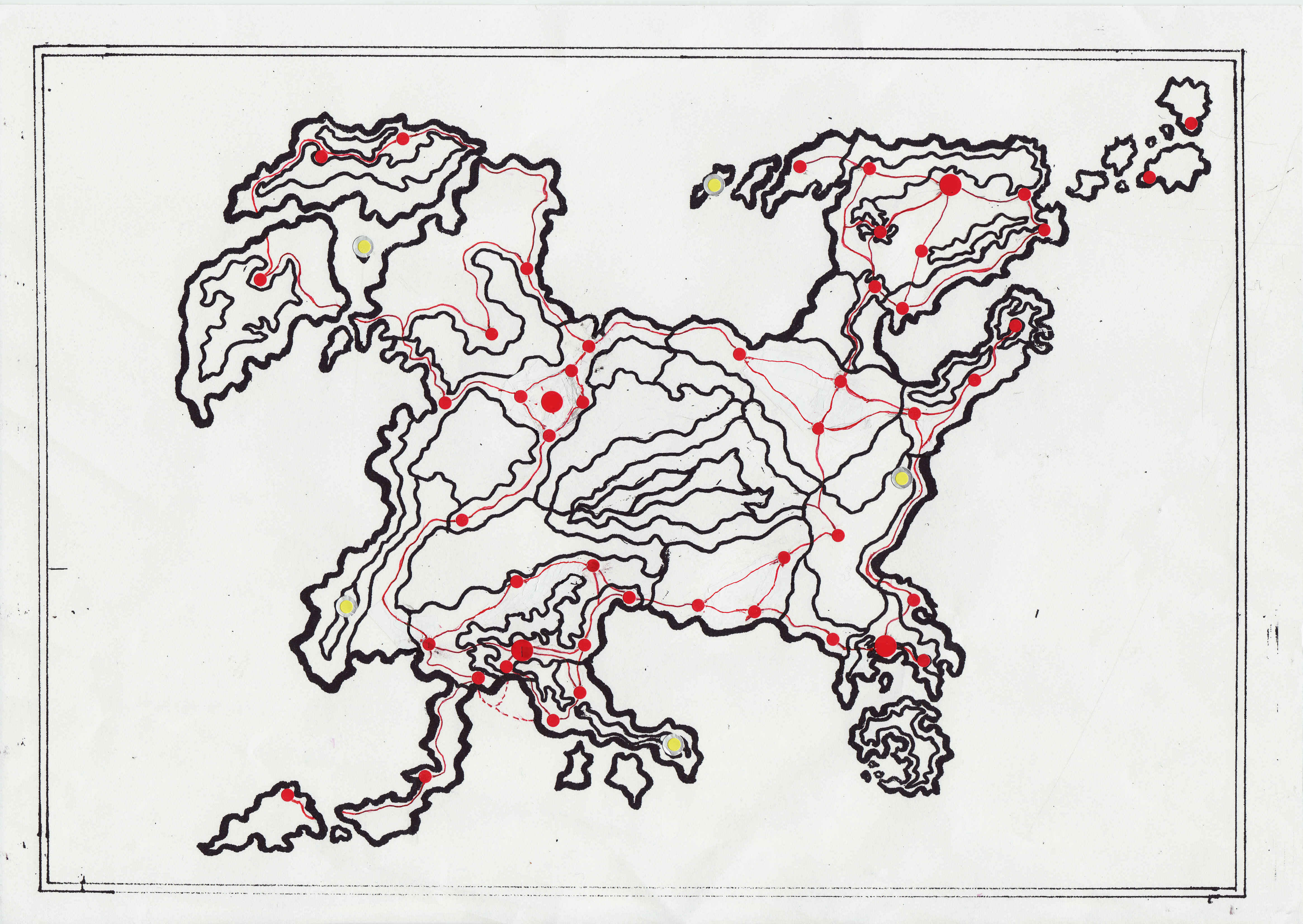 ス・ケ・ス・ギ〜!(by IKKO ロッキー、これ、ラフの段階よ。 交通網の赤いラインは良く分かったけど、 もっとこぉ〜、国ごとに色分けして変身してくれるかしら?